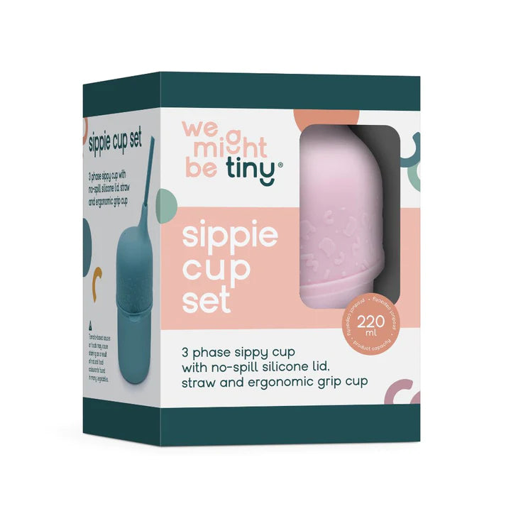 Our We Might Be Tiny Sippie Cup Set is your hygienic and easy-to-clean toddler companion that means you can confidently start the transition from bottle to a sippy cup, to sippy cup with a straw, to an open cup with a straw, and even an easy-to-grip open cup (no straw needed).