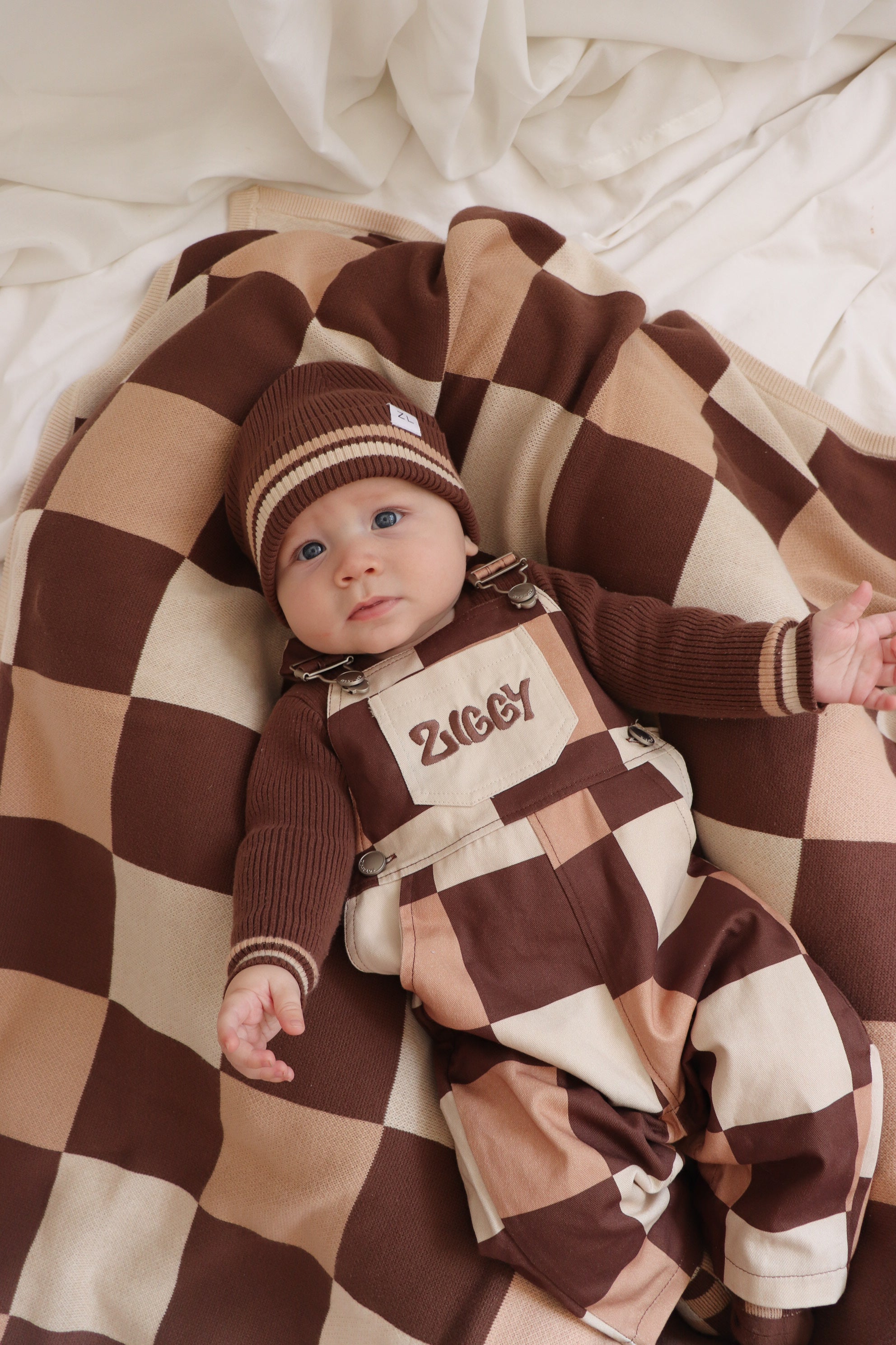 Beautiful jacquard knit blanket featuring our Checks design. Match with items from our Theo + Checks Collection.