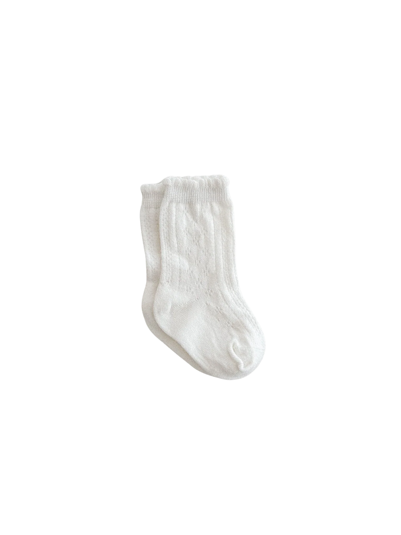 Our Milk socks are a knee high sock, featuring a gorgeous lace detail to mix and match with any outfit.
