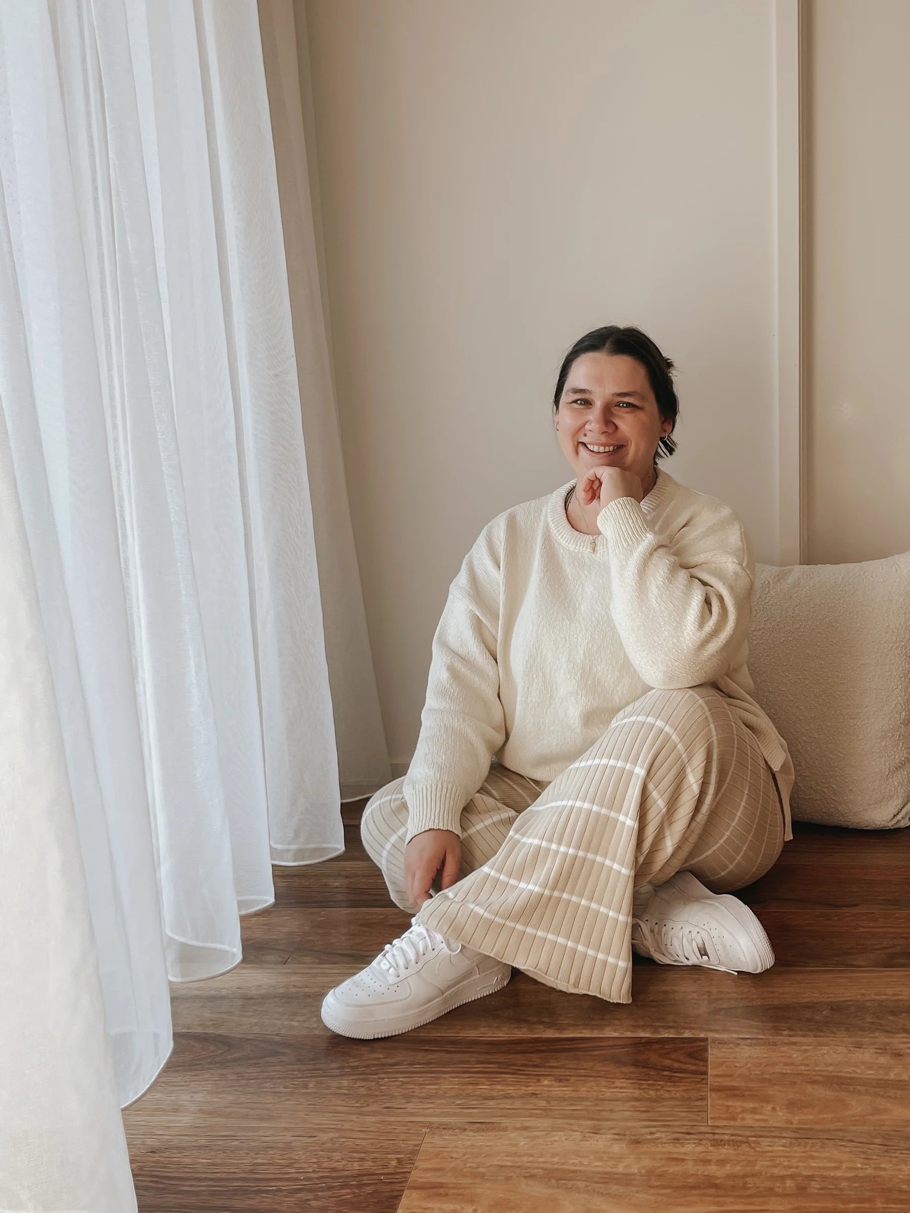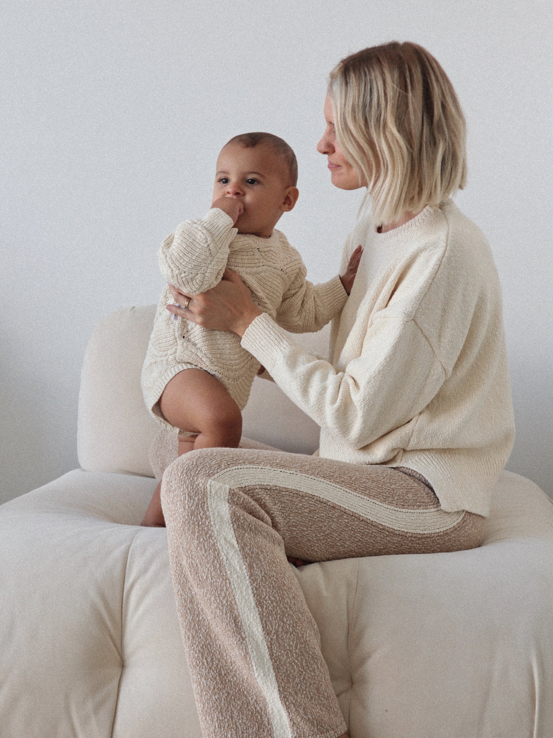 Our Ivory jumper is the perfect Winter staple, a netural coloured jumper easy to pair with any outfit or match with our knitted almond pants for a comfy winters day outfit.