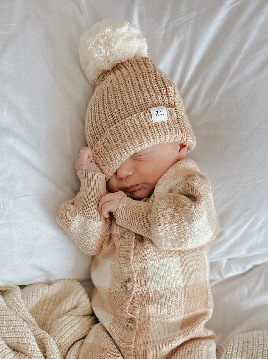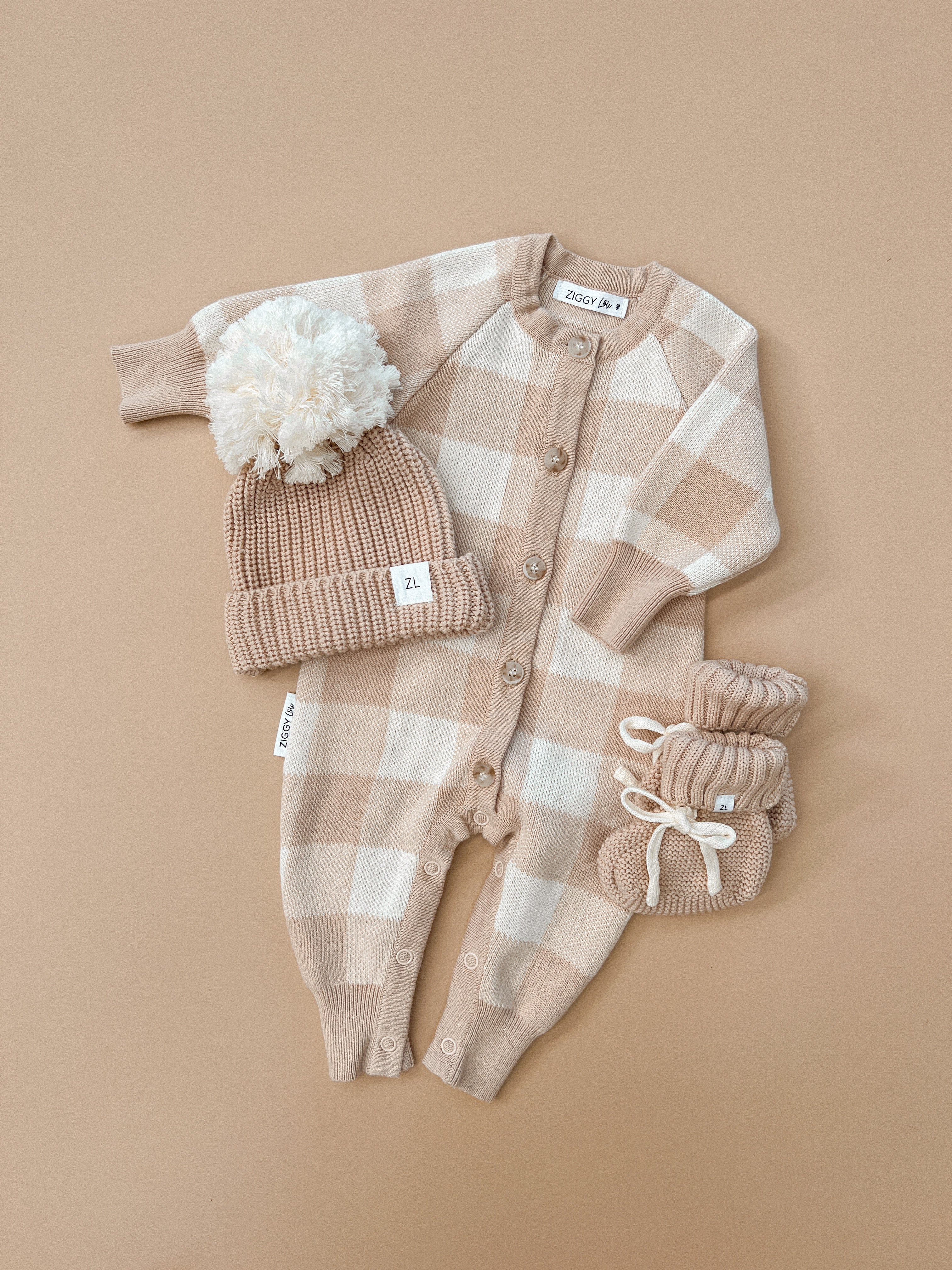 100% Organic Cotton chunky knit beanie to match our gingham romper.