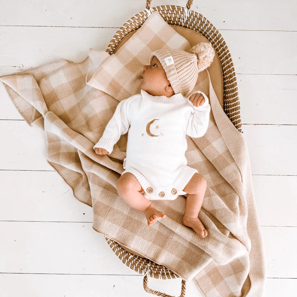 Ziggy Lou | Caramel Gingham Knitted Blanket