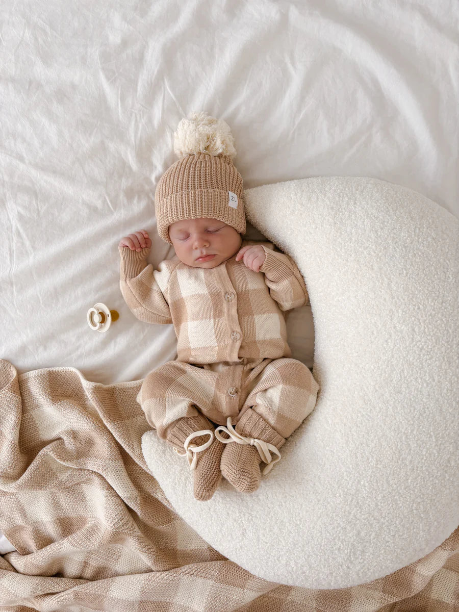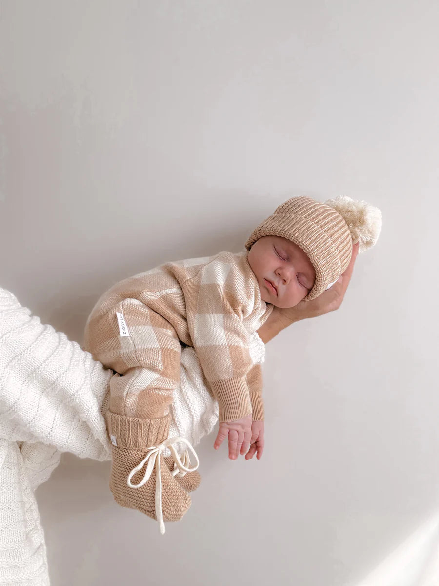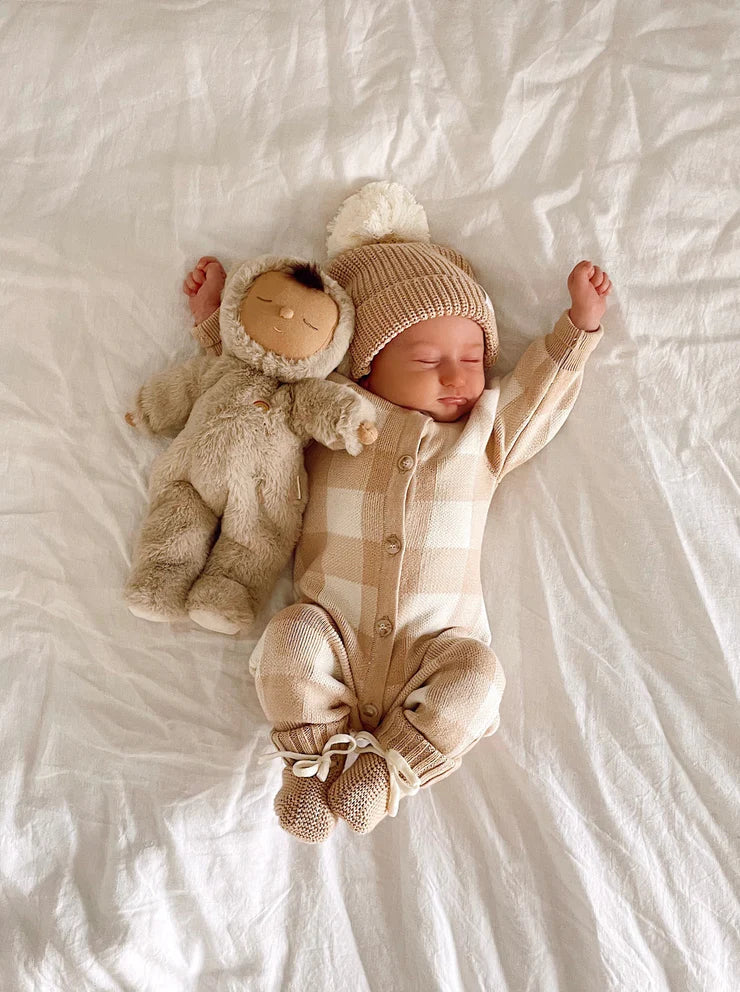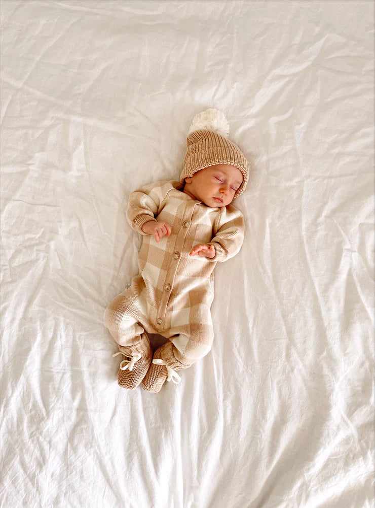 A beautiful knitted romper, designed with comfort in mind. Designed to be a timeless keepsake to remember just how teeny, tiny they were. A high quality piece to pass down to other siblings or a special something to pop in their keepsake box. Pair with our matching beanies & booties for the perfect winter outfit. Functional snaps at crotch for easy nappy changes.
