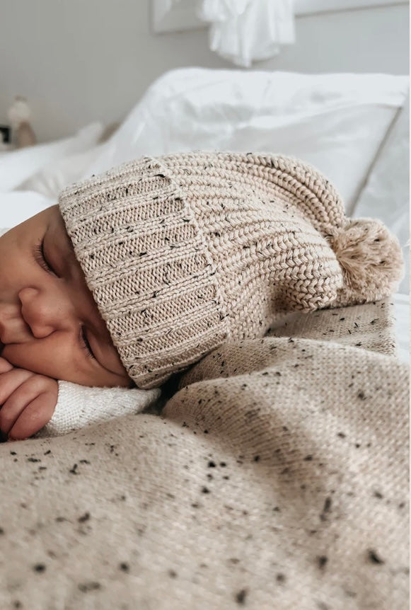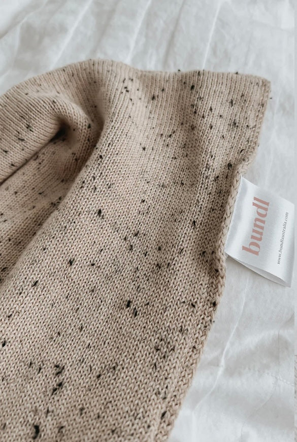 This classic jacquard knit blanket perfect for keeping your most precious Bundl warm and cosy in the cooler months. The 100% organic cotton is sprinkled with a subtle black fleck throughout matching in with your stroller or pram. beige base- Cinnamon Bun.