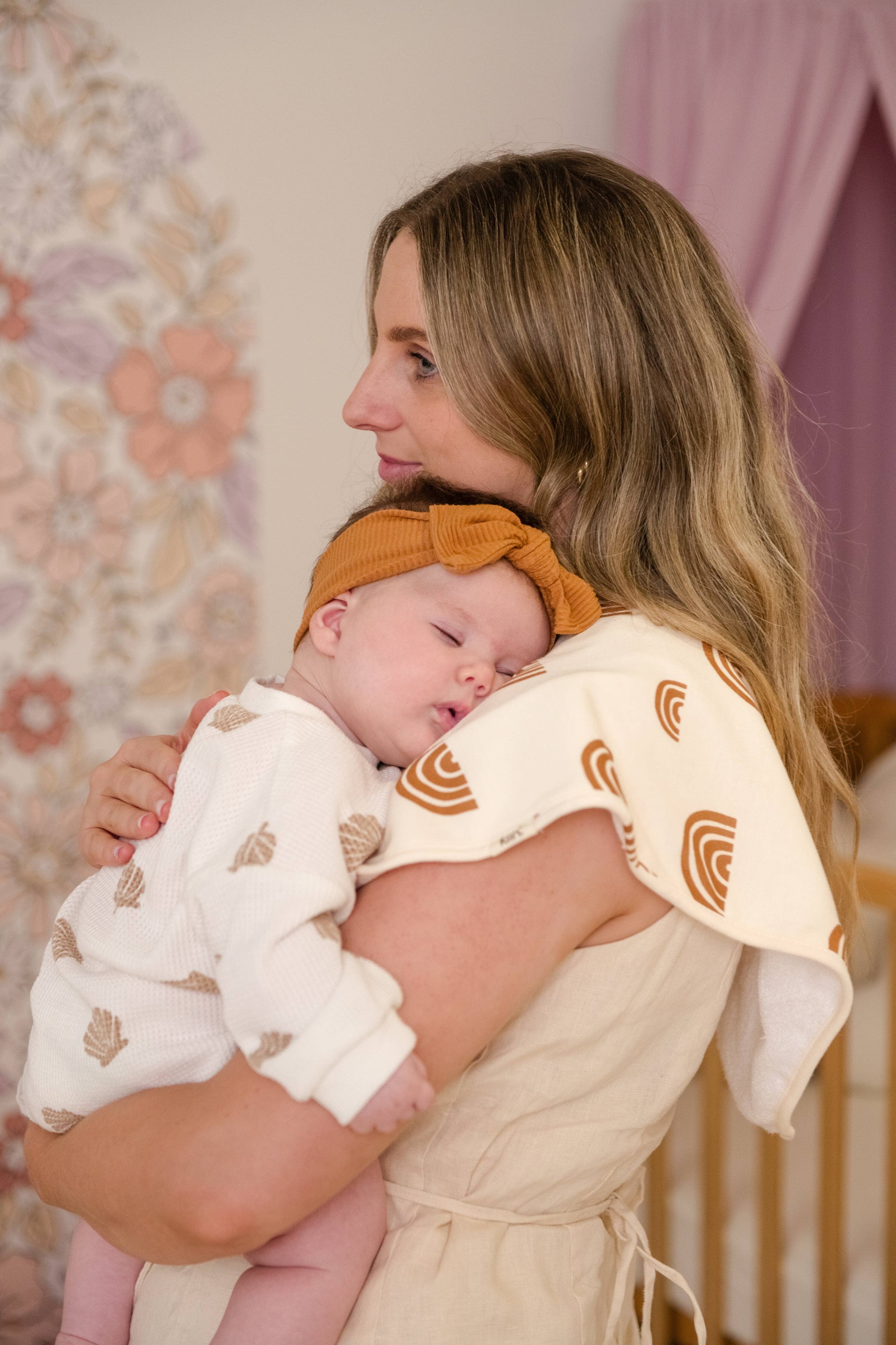 Bamboo Rib: Made from the same luxuriously soft bamboo stretch fabric as our swaddles, bows, beanies and mittens, this option was thoughtfully designed to extend the life of our materials. By using surplus fabric from these popular essentials, we’ve created a burp cloth that is as gentle, breathable, and stretchy as the pieces you already know and love.