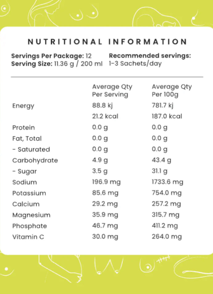 In one easy-to-use sachet, we’ve packed all the ingredients you need to have the optimal hydrations level during pregnancy and postpartum based on recommended daily in-takes and Australian Guidelines.